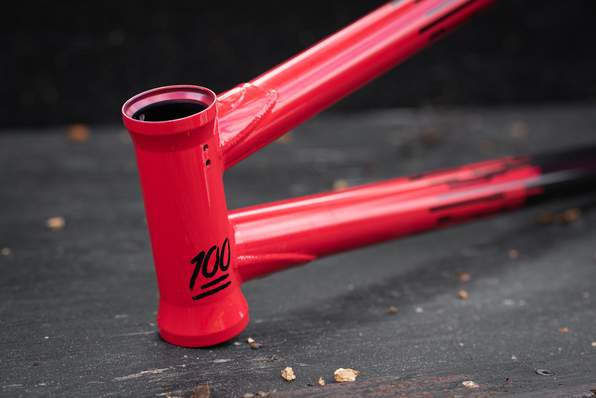 SUB_JiriBlabolMR1Frame_BlackRed_HeadTubeLogo-CloseUp_OnWood